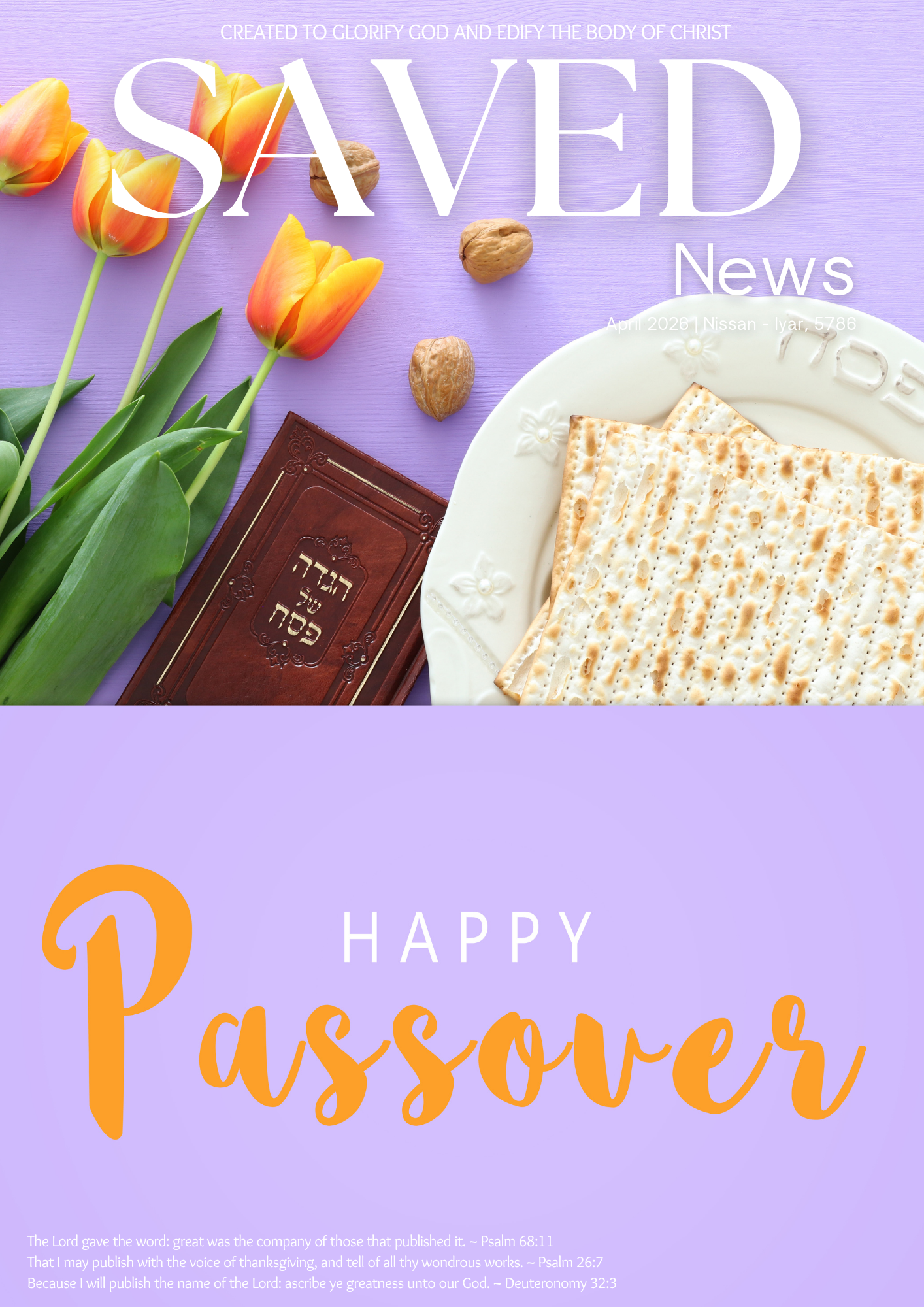 Passover and Resurrection – SAVED News Magazine April 2026 editionHomeSAVED News Cover by admin April 2, 2026 1 min 3 weeks Celebrating and honoring the Passover and Resurrection in SAVED News Magazine April’s edition and much more. Click to read. Share this:Share Email a link to a friend (Opens in new window) Email Tweet Print (Opens in new window) Print SAVED News Cover More Stories Post navigation Previous postNext post Leave a Reply Cancel replyYour email address will not be published. Required fields are marked *Comment * Name * Email * Save my name, email, and website in this browser for the next time I comment. Δ This site uses Akismet to reduce spam. Learn how your comment data is processed.